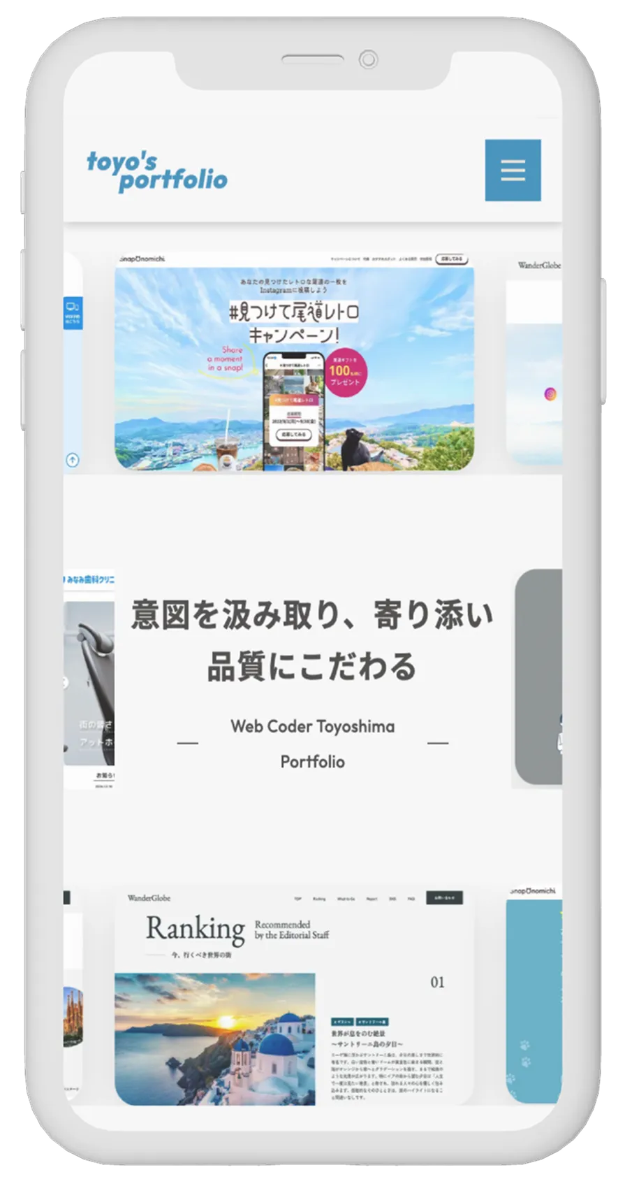 - 自身の制作実績やスキルを分かりやすく伝えるポートフォリオサイトとして制作しました。
