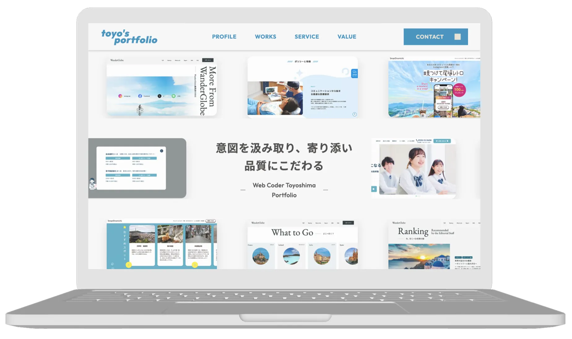 デザイナーと協力し、作品の見やすさやサイト全体の統一感を意識しながら、デザインの意図を汲み取ったコーディングを行いました。